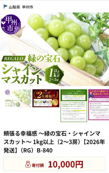 • 2位:シャインマスカット → コスパ良し・満足度高し